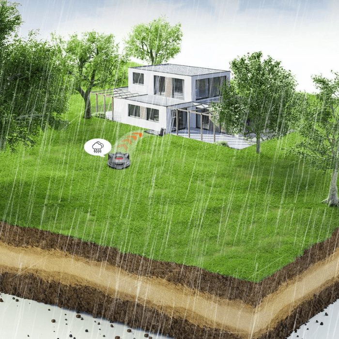 Once recharged the robot mower resumes its mowing task or remains in its docking station until its next scheduled mowing session.